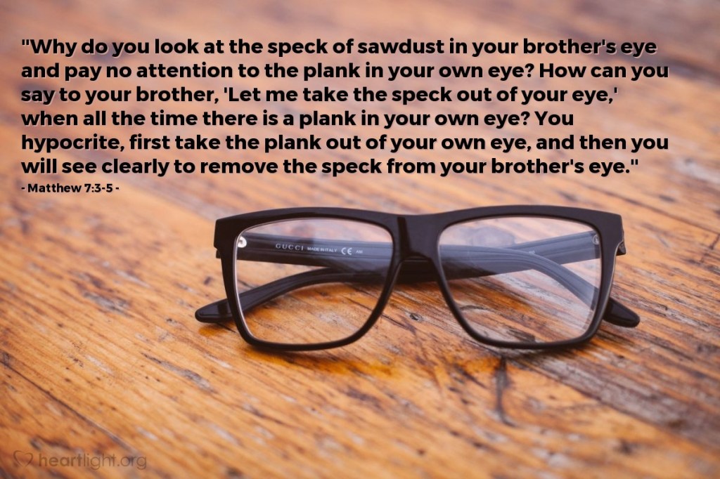 When Jesus told us to address the specks in our own eyes, He wasn’t giving us ammunition to use Scripture as a means to dodge responsibility. He was speaking to all of us. So if you’re reaching for Matthew 7:3-5 to silence someone else, make sure your eyes are clear, too, because it looks like you might have gunk in your eyes that might need tending to.